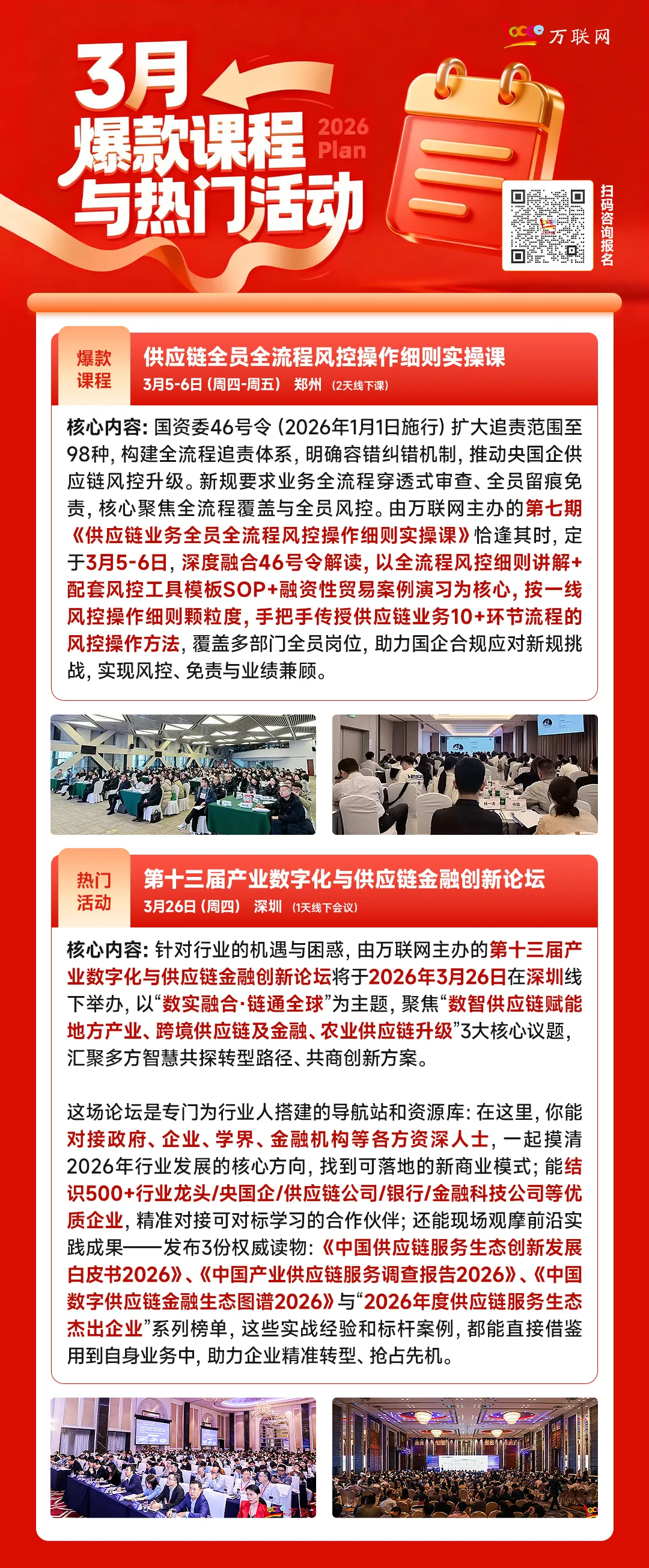 恰逢其时,为助力国企贸易公司更加合规、低风险地完成营收、拓展利润,2026年3月5-6日,万联网计划在郑州举办第七期《供应链业务全员全流程风控操作细则实操课》。这个系列课程目前已开班六期,累计吸引了600多位来自200多家大型国企集团的高管组团报名。