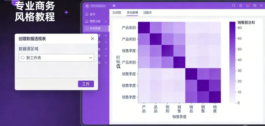 1、选中数据:点击表格内任意单元格,确保数据是连续的。2、插入透视表:在「插入」选项卡点击「数据透视表」,默认设置即可。4、即时生成:一张清晰的多维汇总表瞬间呈现,还可以随时调整维度。- 数据更新后,记得在透视表上右键「刷新」以获取最新结果。