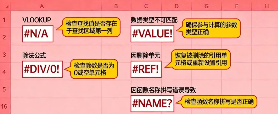 解决:确保「条件区域」和「求和区域」的大小完全一致。错误2:VLOOKUP找不到值