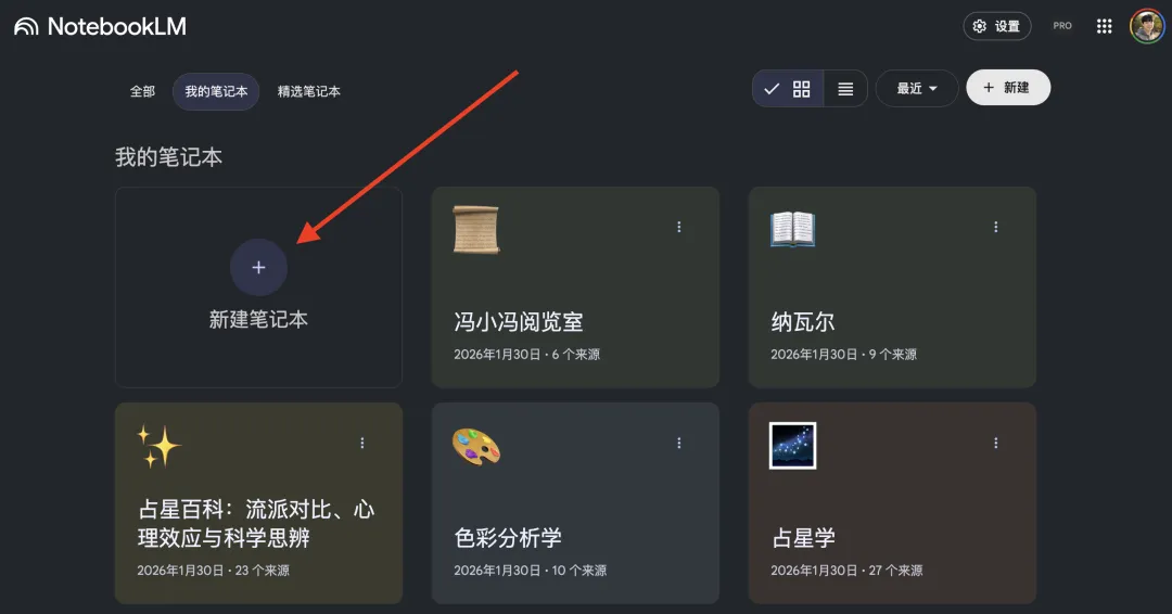1、打开NotebookLM网站 https://notebooklm.google.com 选择新建笔记本