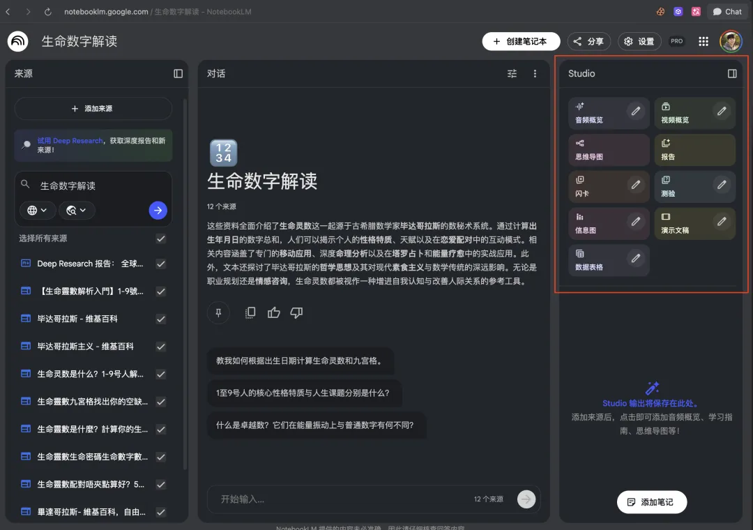 NotebookLM它的强大在于它的一源多用,内置Gemini3的大模型。