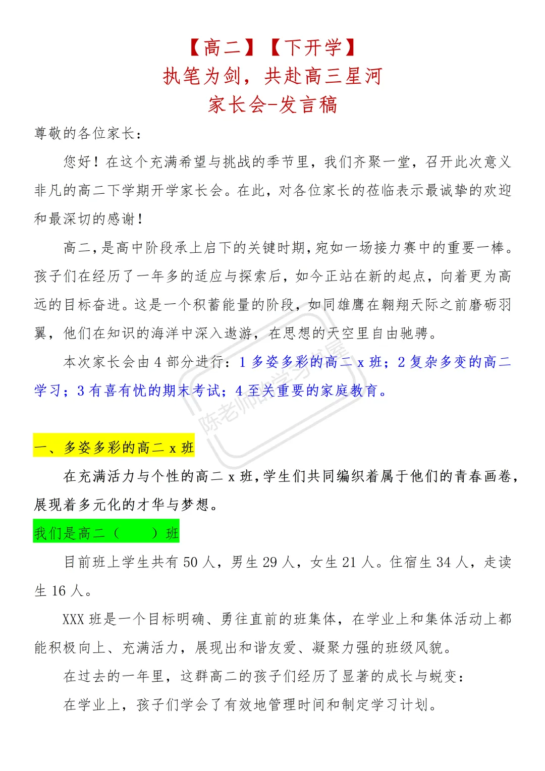 >2026高二下开学家长会PPT|共赴高三星河|68页+配套文稿