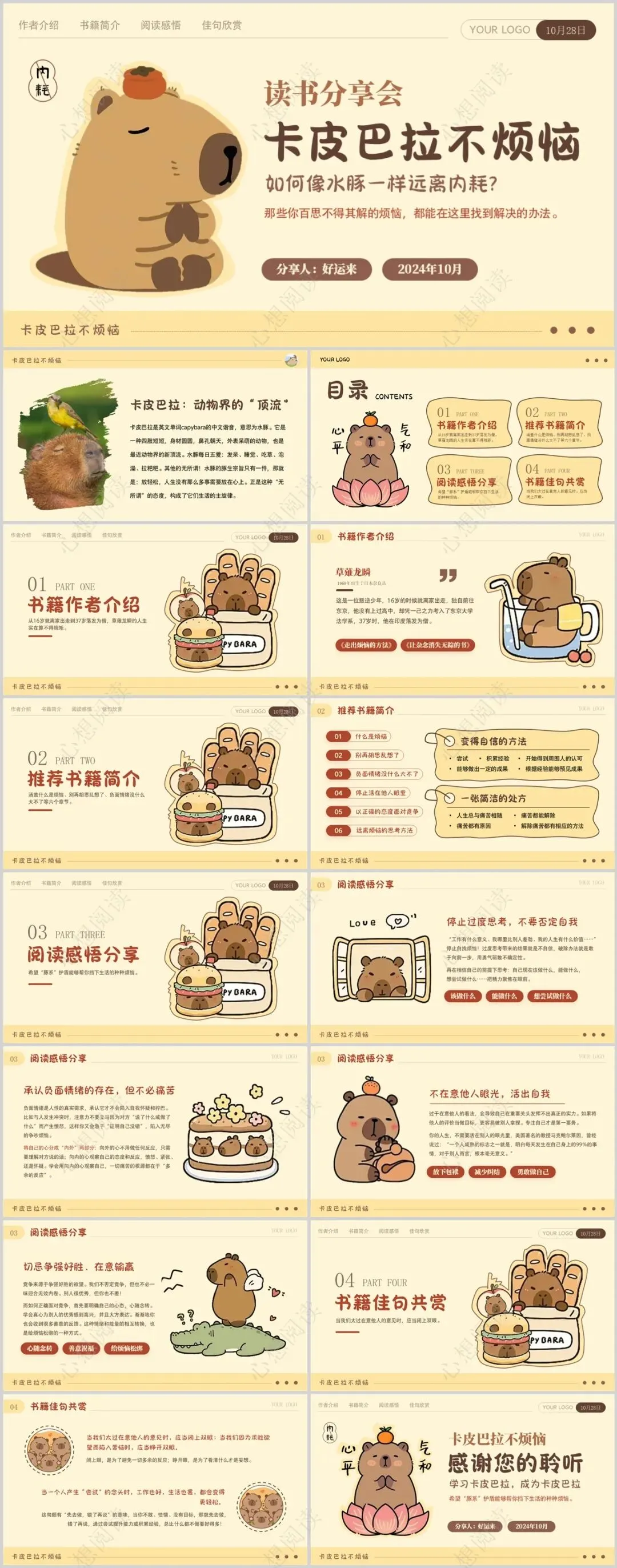草薙龙瞬《卡皮巴拉不烦恼》读书分享PPT15页+演讲稿1500字