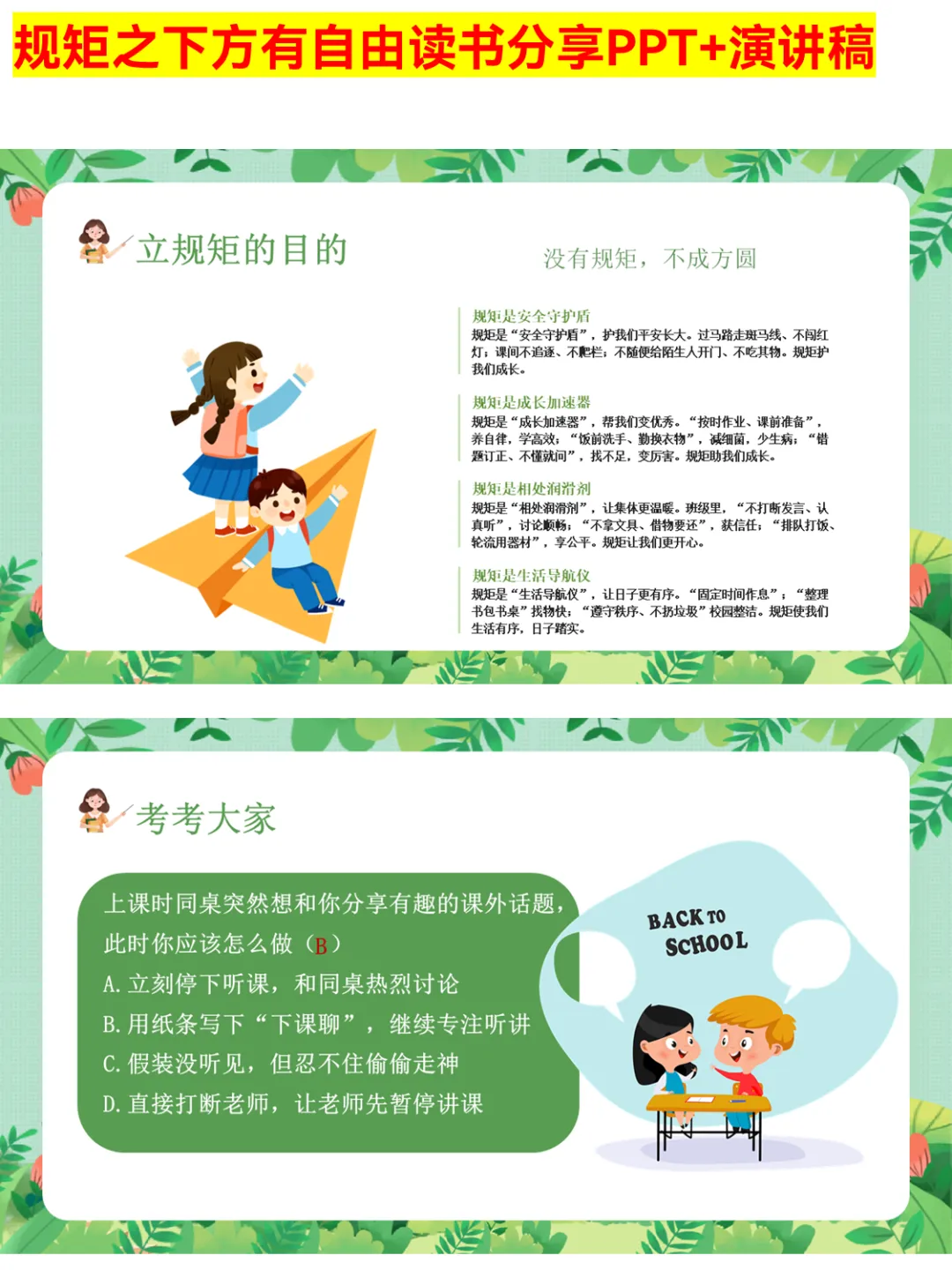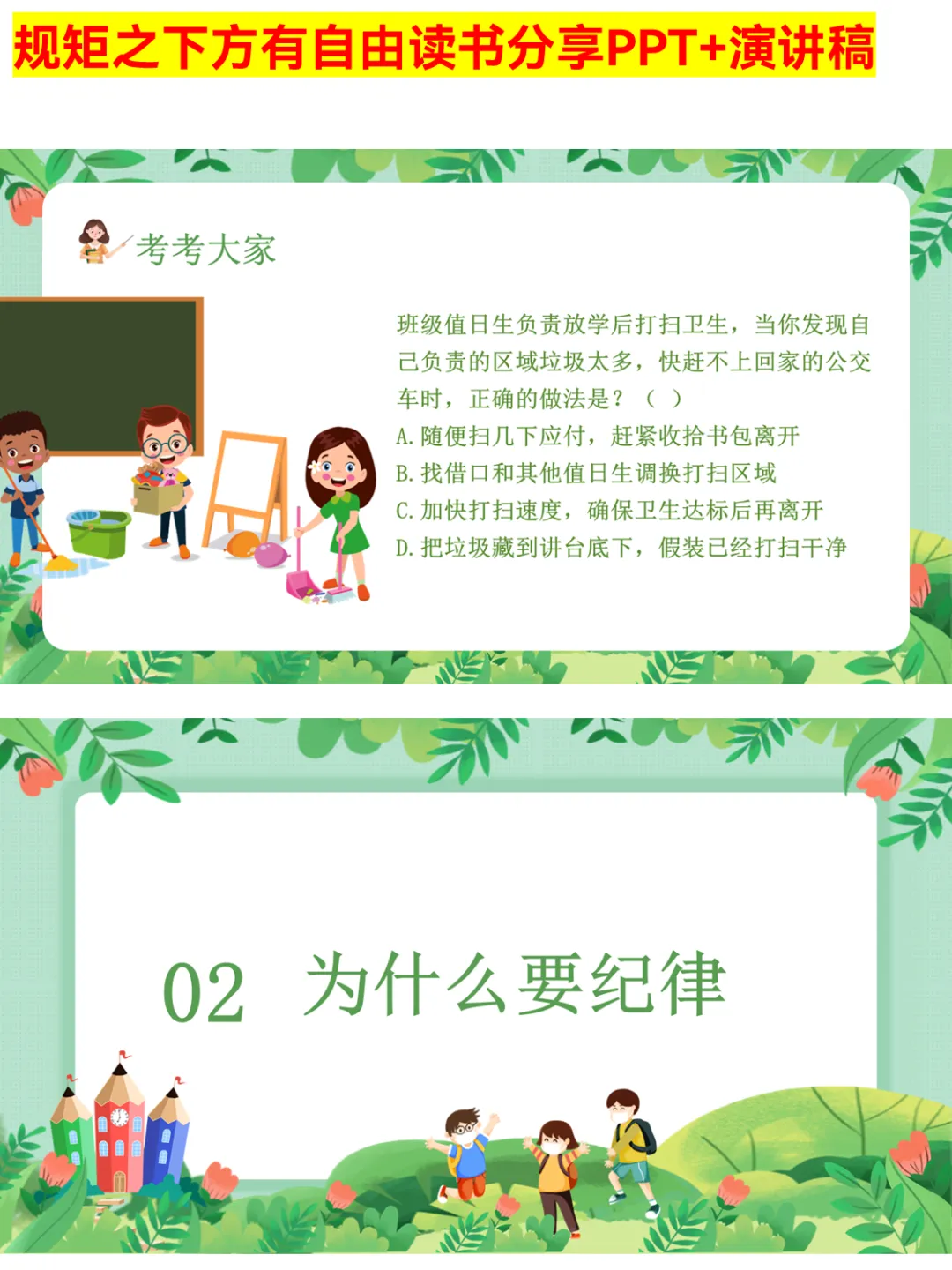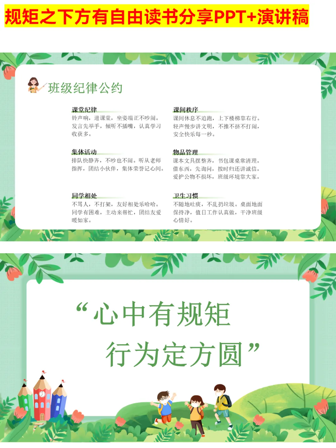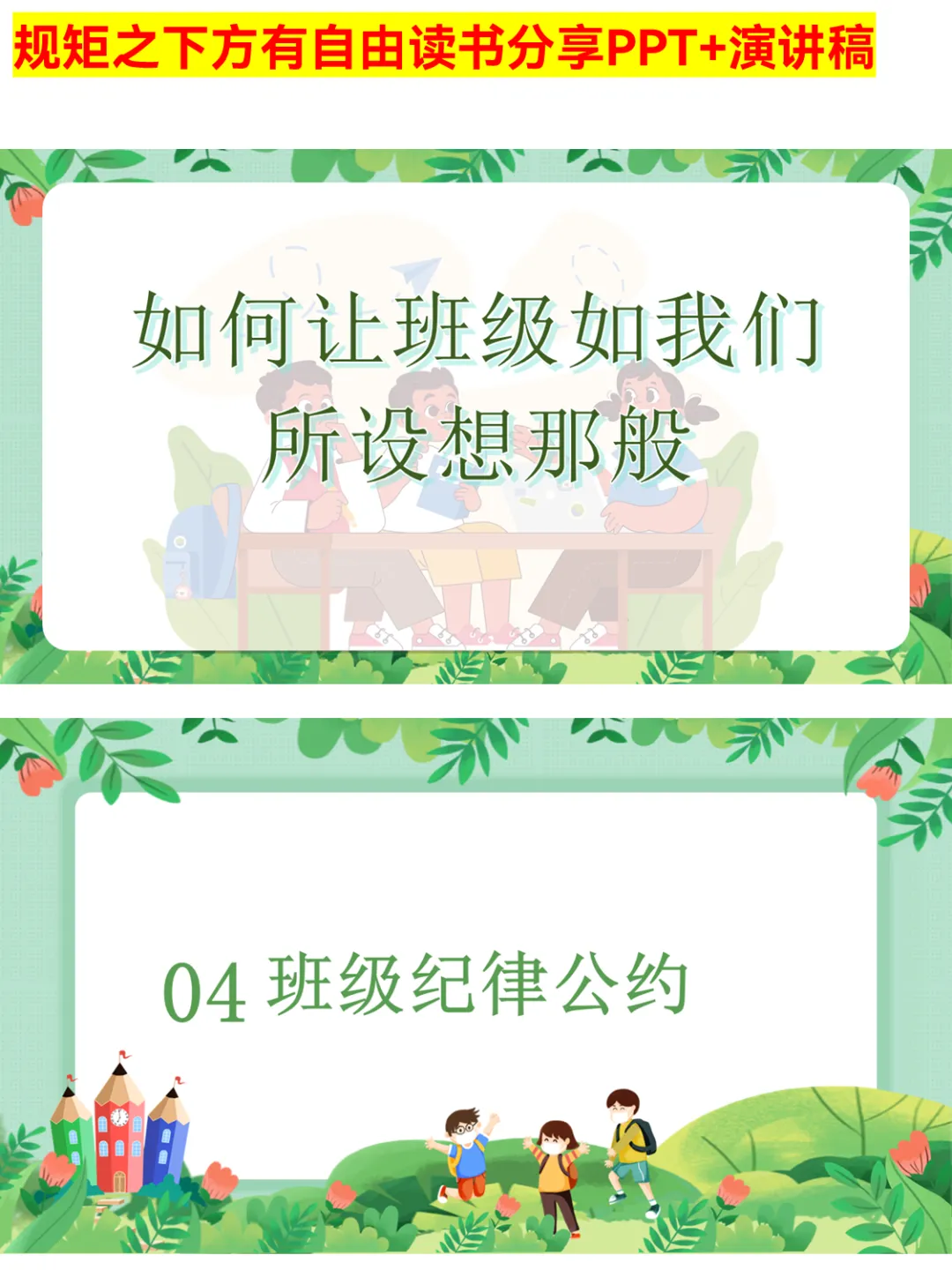 正在找班级管理PPT的班主任、老师看过来!这份“规矩之下方有自由”PPT太赞啦~ 从理想班级构想,到立规矩的重要性,再到班级愿景和纪律公约,覆盖课堂、课间、集体活动等全场景,还配有互动思考题,让学生轻松理解纪律与自由的关系,帮班级建立有序又温暖的氛围,班级管理必备! #班级管理PPT #班主任必备 #班级纪律 #规矩与自由 #班级建设 #教师资源 #课堂管理 #学生管理 #班级公约 #校园管理