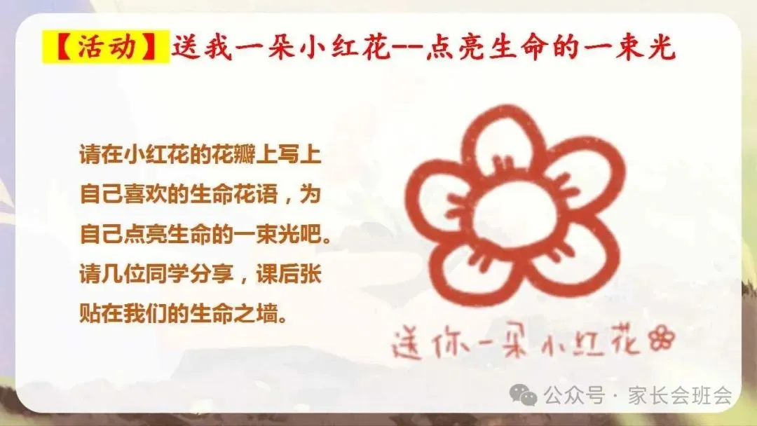 >生命教育主题班会ppt:点亮生命的一束光.含教案、视频、讲稿、活动卡