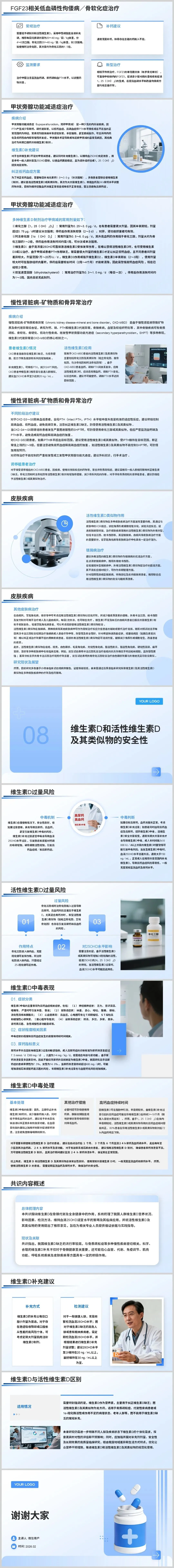 临床应用方面,预防缺乏以日晒为主,日晒不足者首选每日小剂量口服维生素 D₂或 D₃,特殊人群需增至常规剂量 2~3 倍;骨质疏松症患者需将 25OHD 维持在 30ng/mL 以上,老年及肾功能不全者推荐联用活性维生素 D。佝偻病 / 骨软化症、甲状旁腺功能减退症、慢性肾脏病 - 矿物质和骨异常等疾病,需根据病因采用大剂量维生素 D 或活性类似物治疗,皮肤疾病以外用活性维生素 D 类似物为核心方案。