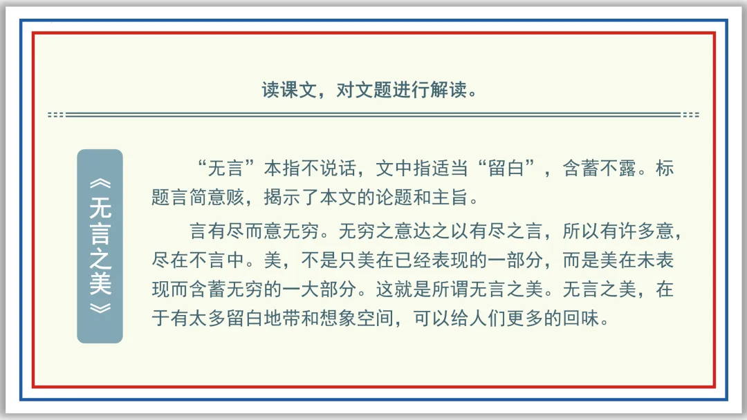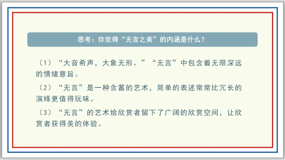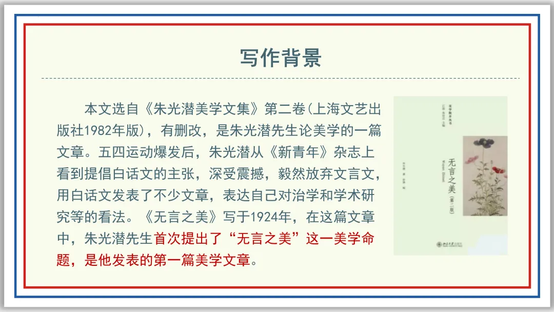 九下PPT:无言之美 | 赠《谈美》44页《朱光潜批评文集》272页