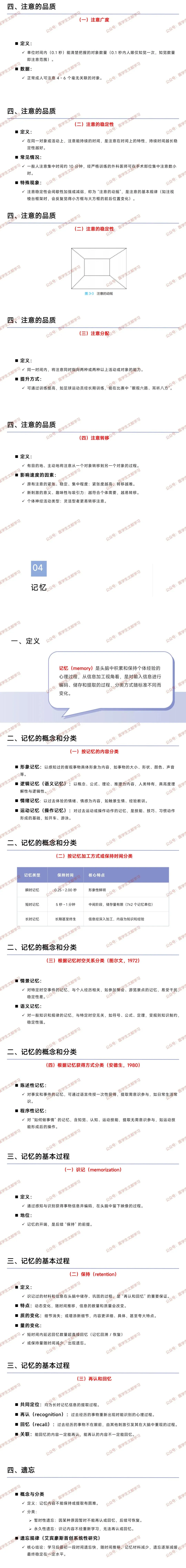 - 核心功能:选择功能(筛选重要信息)、保持功能(维持意识中的信息)、调节监督功能(调控心理过程,如避免走神)。