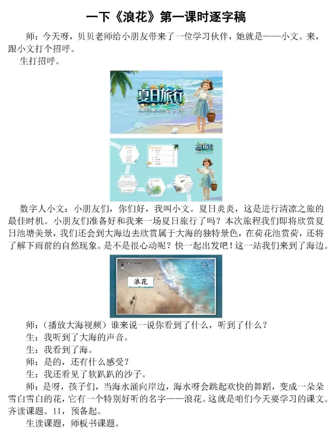 一下《浪花》第一课时AI精品课件(PPT/希沃均有)有配套逐字稿、教学设计等