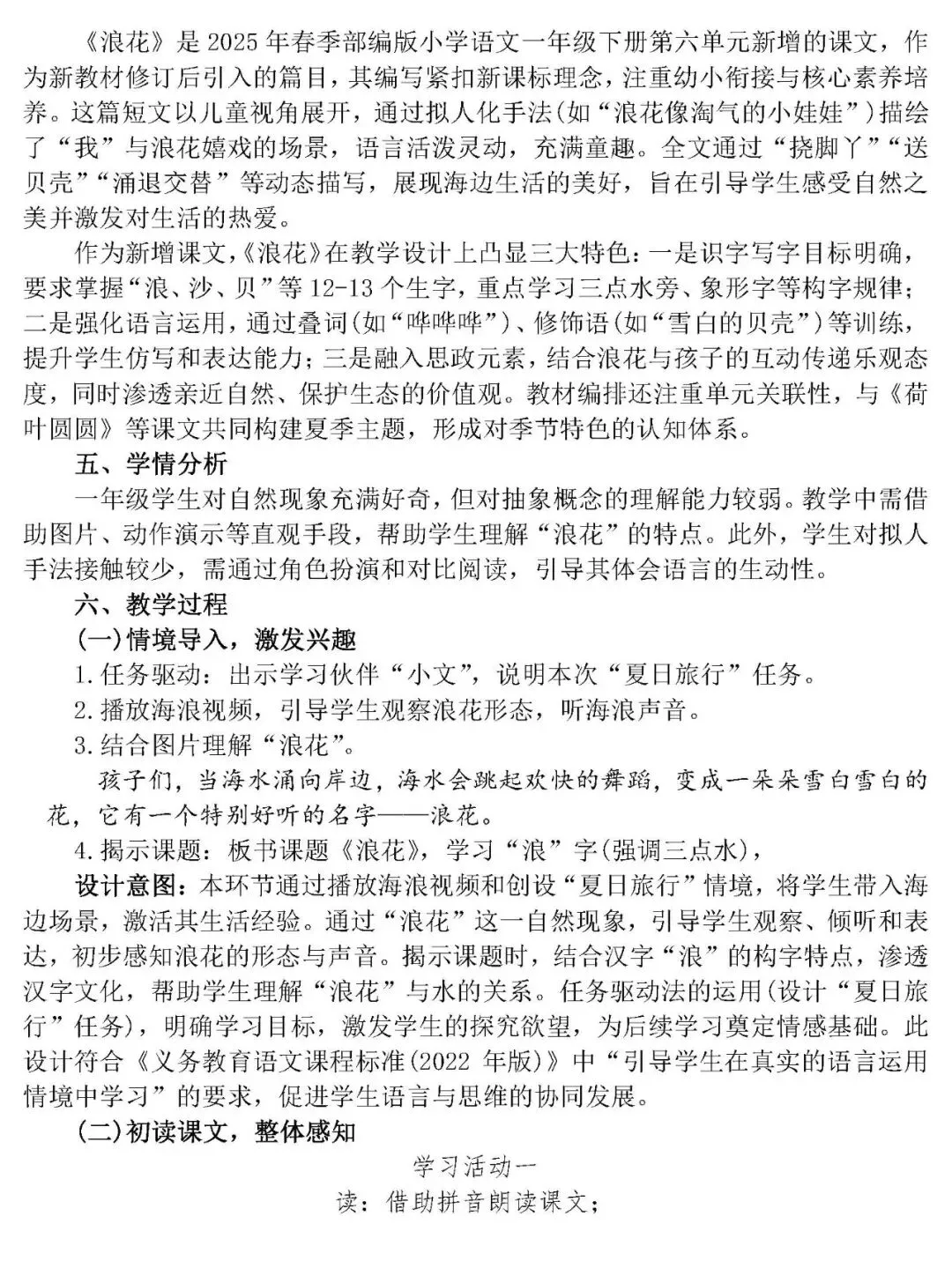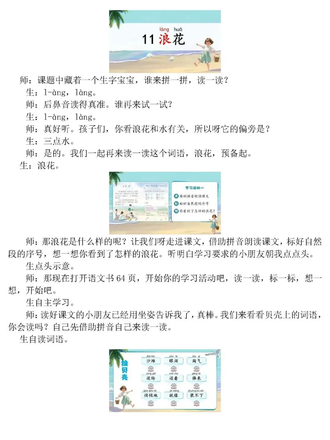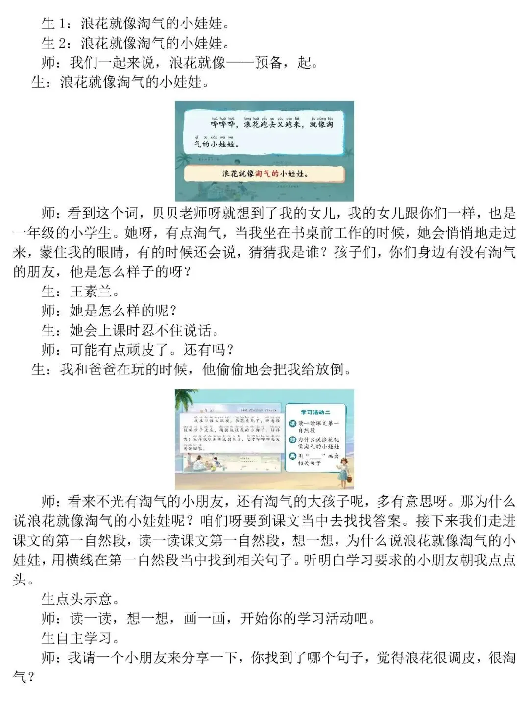 >一下《浪花》第一课时AI精品课件(PPT/希沃均有)有配套逐字稿、教学设计等
