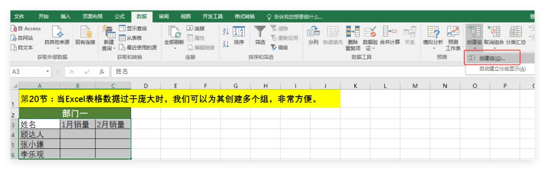第20节:当Excel表格数据过于庞大时,我们可以为其创建多个组,非常方便.