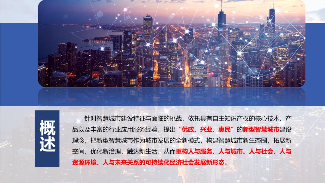 发展愿景:打造安全有序、高效透明、绿色和谐、民生幸福的智慧城市,推动产业升级与社会治理优化。