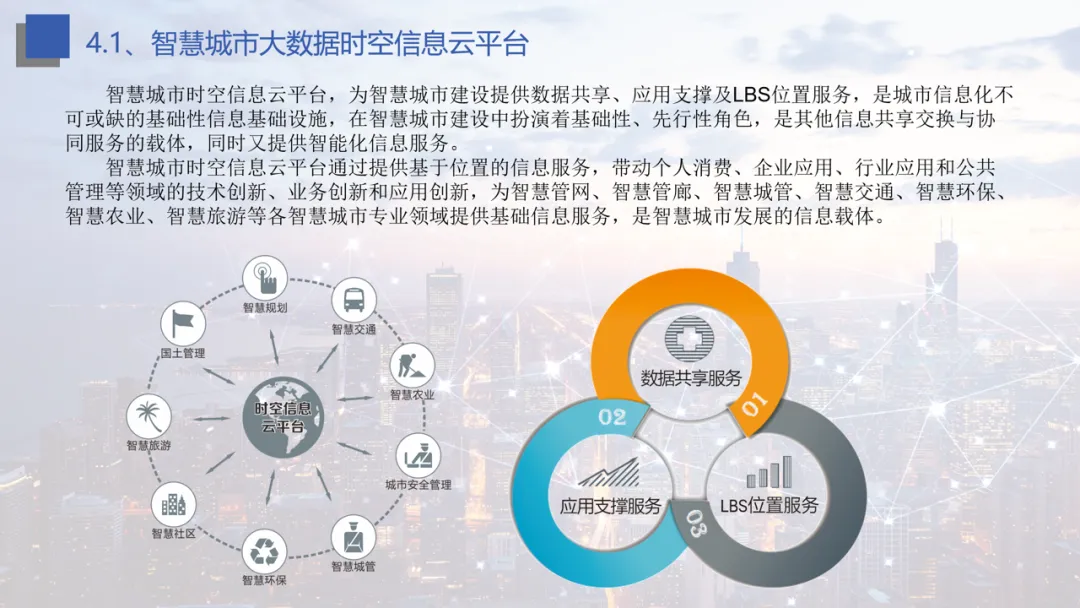 核心基础设施:构建时空信息云平台、北斗高精度位置服务云平台、大数据中心三大基建,打通 “信息烟囱”。