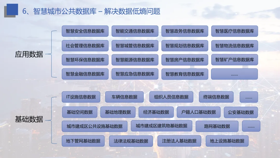 数据库建设:建立公共数据库、中间数据库,整合基础数据与应用数据,形成城市 “知识库”,支撑多场景应用。