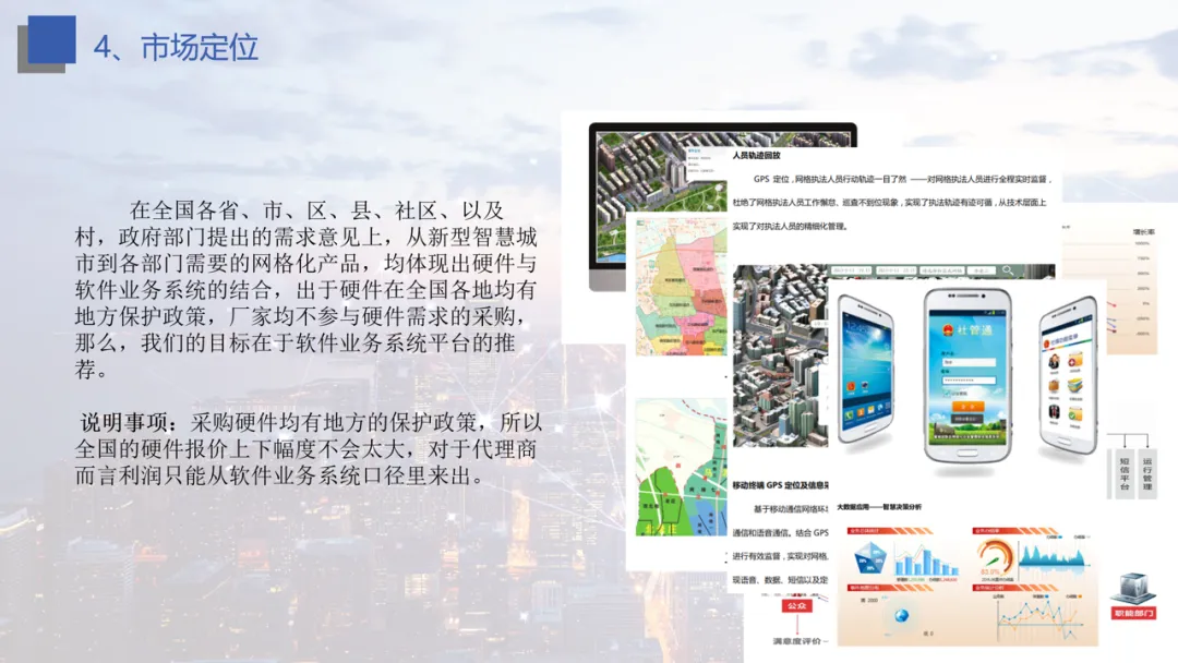 产品与市场:聚焦网格化管理相关软件平台,适配政府多部门需求,瞄准 20 万亿级潜在市场。