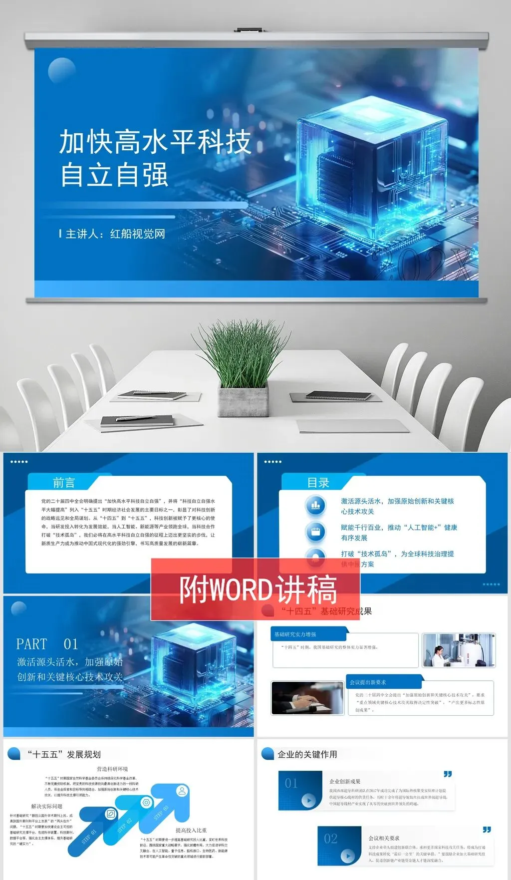 本课件主要内容为加快高水平科技自立自强PPT课件,讲稿字数:3625字。