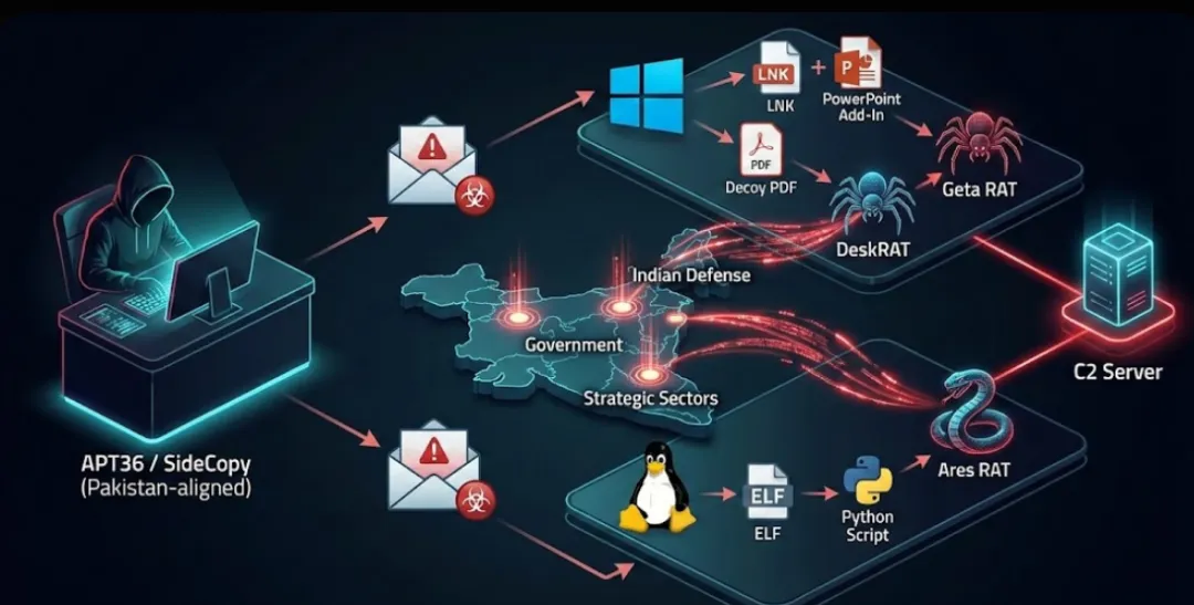 今天咱们要扒的这个主角,是长期活跃在南亚地区的 APT36 (又名 Transparent Tribe) 以及它的“分舵”——SideCopy。这帮人最近不仅搞起了 Windows 和 Linux 的跨平台“双杀”,还把我们平时最容易忽略的 PPT 插件(Add-In) 玩成了大杀器。