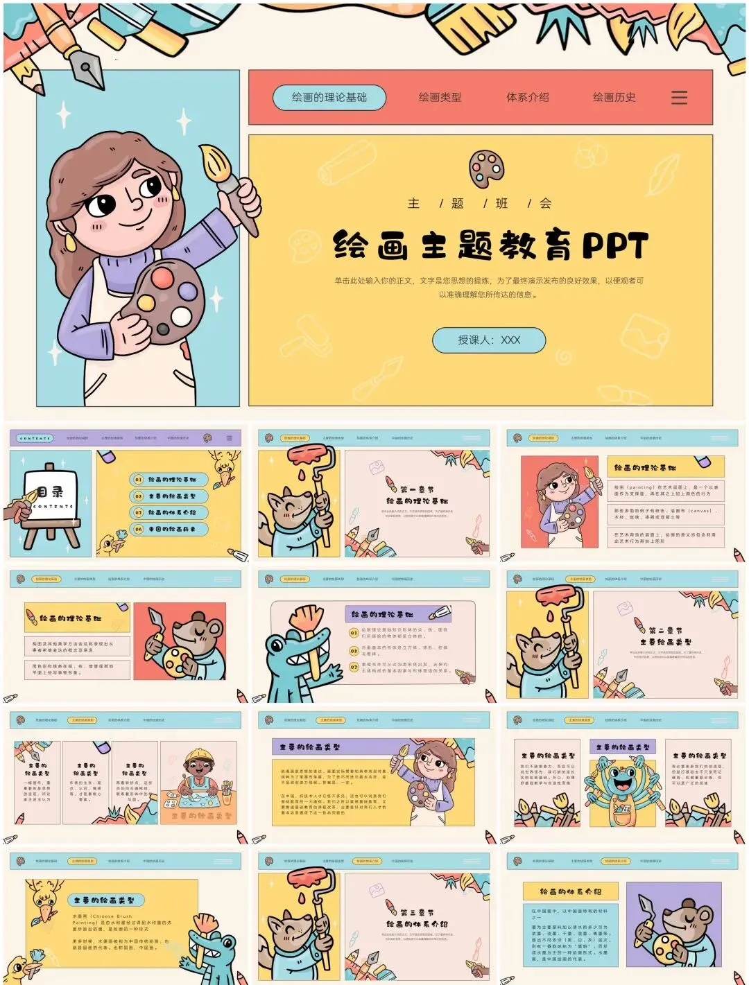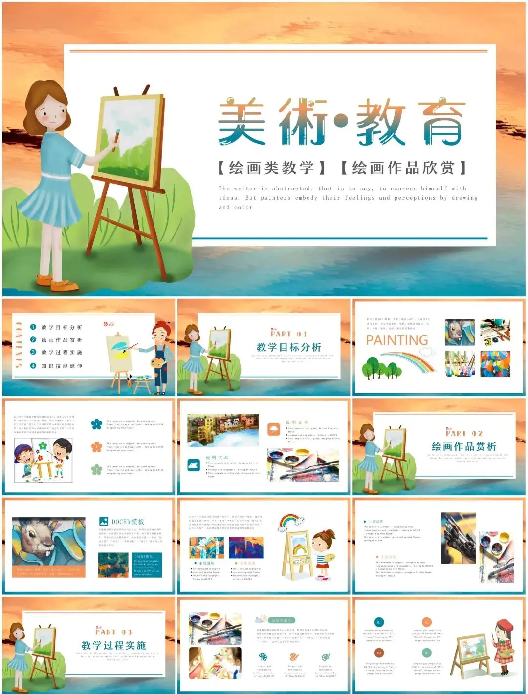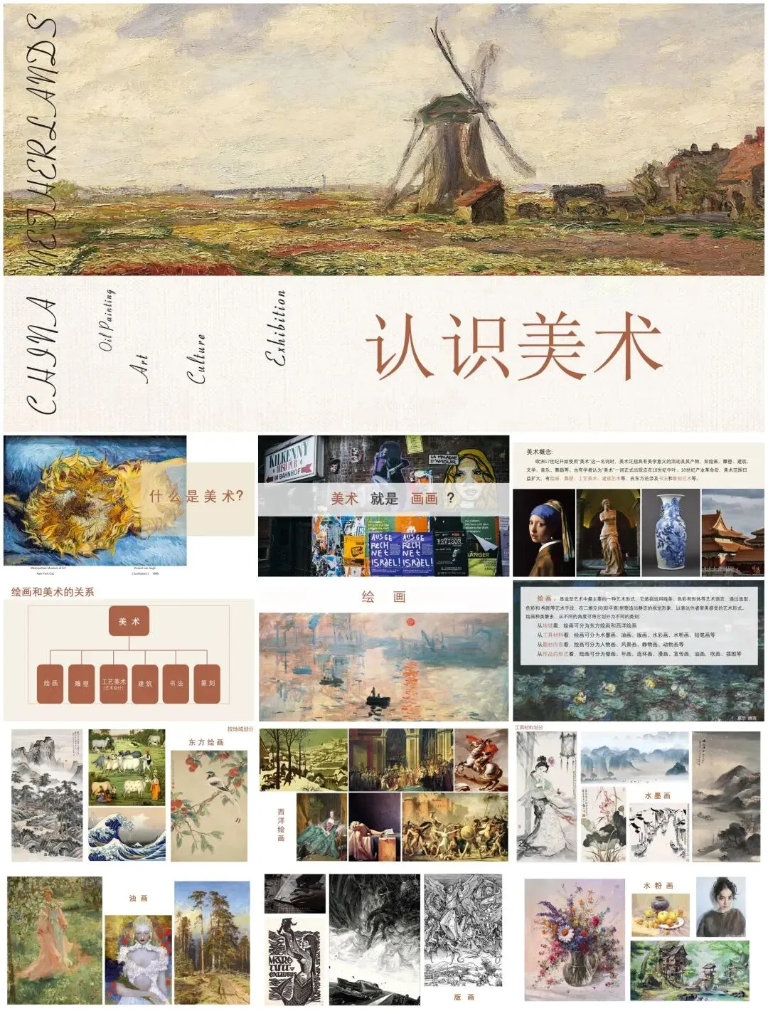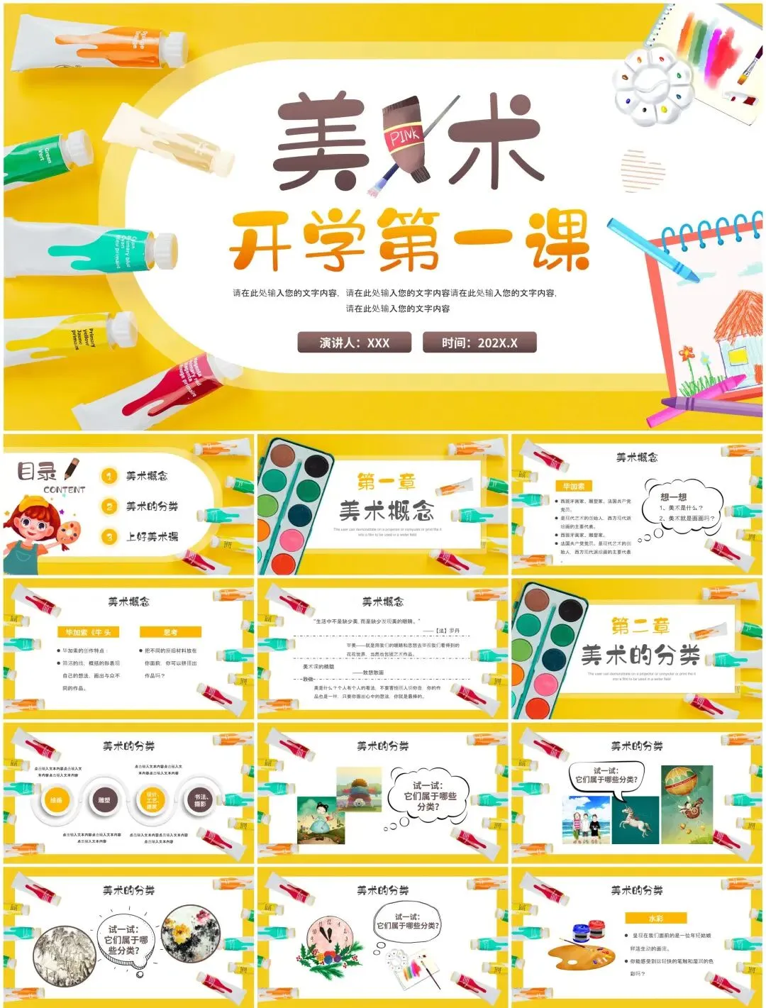 为助力艺术教学、画展策划、美学讲座等场景,小man精选【60套】高质量美术绘画PPT模板,涵盖中西画派赏析、技法教学、艺术史解读、作品展示等多元主题。