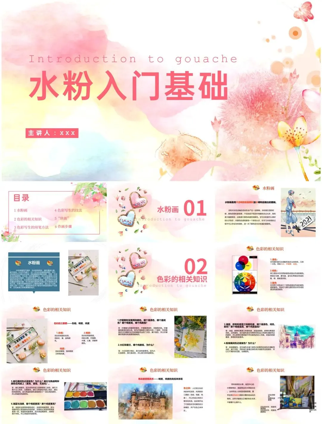 模板设计兼具视觉艺术感与教学实用性,色彩搭配优雅,排版自由灵活,让美术知识的传递既专业又充满灵感!