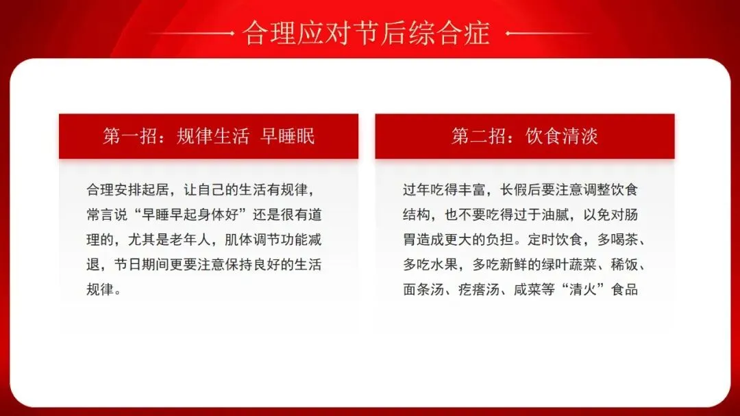过年吃得丰富,长假后要注意调整饮食结构,也不要吃得过于油腻,以免对肠胃造成更大的负担。