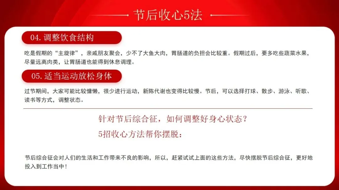针对节后综合征,如何调整好身心状态?5招收心方法帮你摆脱: