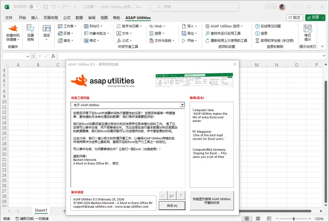 功能强大的 Excel 插件 | ASAP Utilities v9.2.0.0