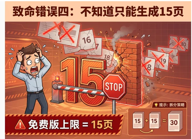 不要试图在提示词里要求生成超过15页的PPT(比如"请生成一份30页的PPT")。