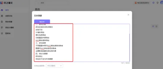 打开讯飞智文:用来进行PPT制作,输入提炼出来的PPT大纲、