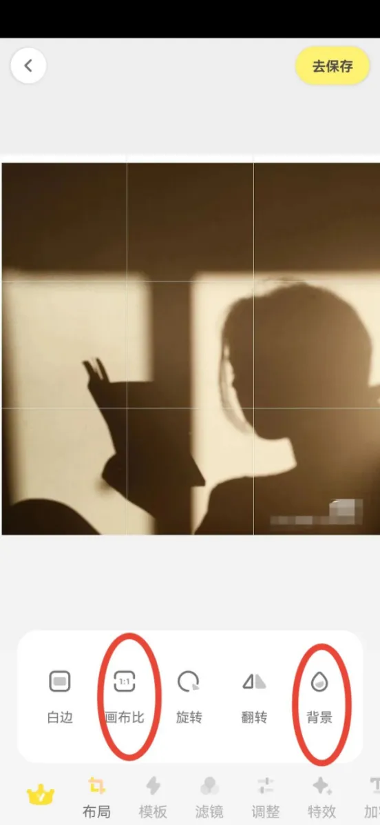 ▶ 第4步:选择目标图片后,首先点击左下角的布局,用“画布比”把尺寸调整为3:4,这一点很重要。