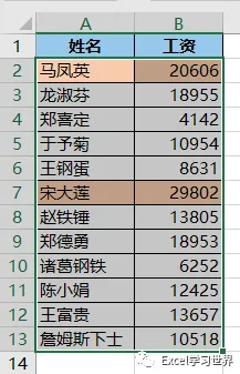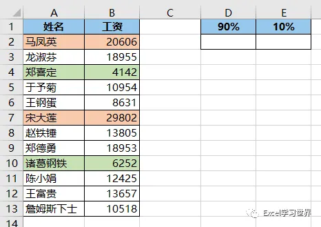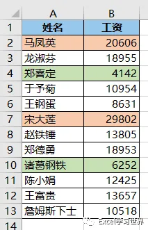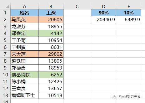 在数据表中用颜色自动高亮显示符合两种比例的人;