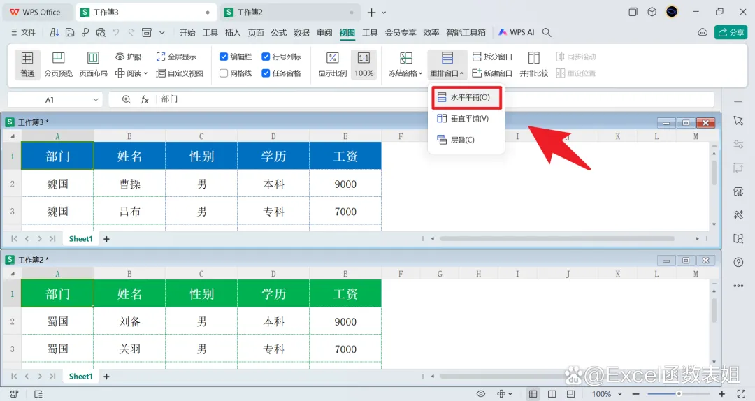 如果你需要同时查看两个表格的行数据,或者表格的列数较少,那么“水平平铺”可能更为合适。它让两个表格上下排列,便于你查看表格的整体结构或进行纵向对比。无论选择哪种排列方式,都能让你轻松在两个表格之间切换,提高工作效率。