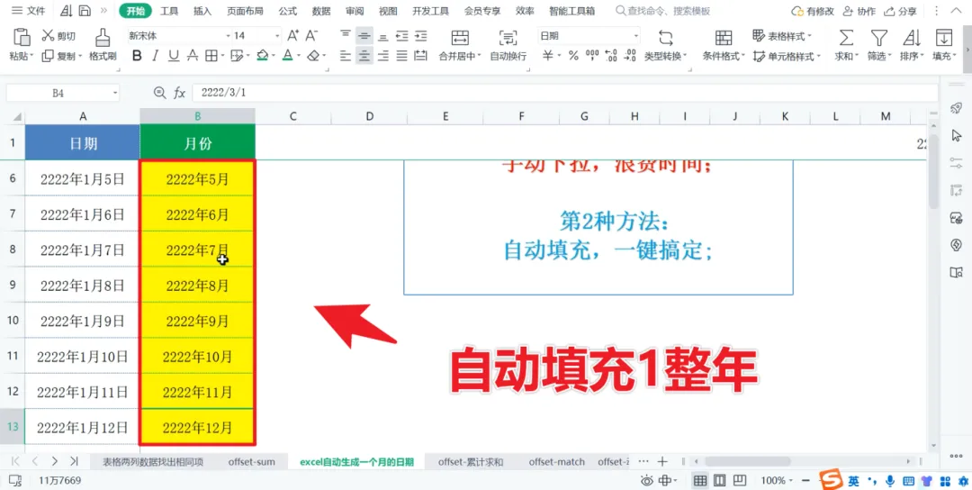 除了能自动填充整月日期,Excel还能一键生成一整年的月份,为制作年度报表提供极大便利。