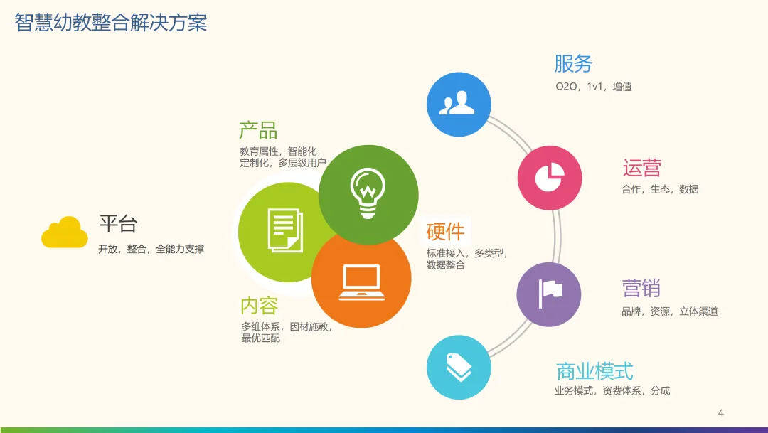 本方案针对当前幼儿教育市场的快速增长和巨大潜力,提出了一套全面、智能化的云平台解决方案,方案旨在通过整合开放平台、家园互动、园所管理、政府监管等多维度功能,构建一个多层次、全能力的智慧幼教生态系统。