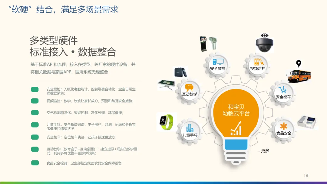 智慧幼教云平台不仅提供了家园互动、成长档案、健康管理等核心应用,还通过开放API和SDK,支持第三方内容和能力的接入,形成丰富的幼教生态圈。平台通过智能推荐系统,根据用户行为和需求,提供个性化内容和资源推荐,提升教育效果。同时,方案还强调了数据安全和隐私保护,确保用户信息的安全。此外,方案还涵盖了多类型硬件的标准接入,如安全晨检系统、视频监控、儿童手环等,实现了软硬件的无缝整合,为园所提供全方位的安全管理和健康监测。