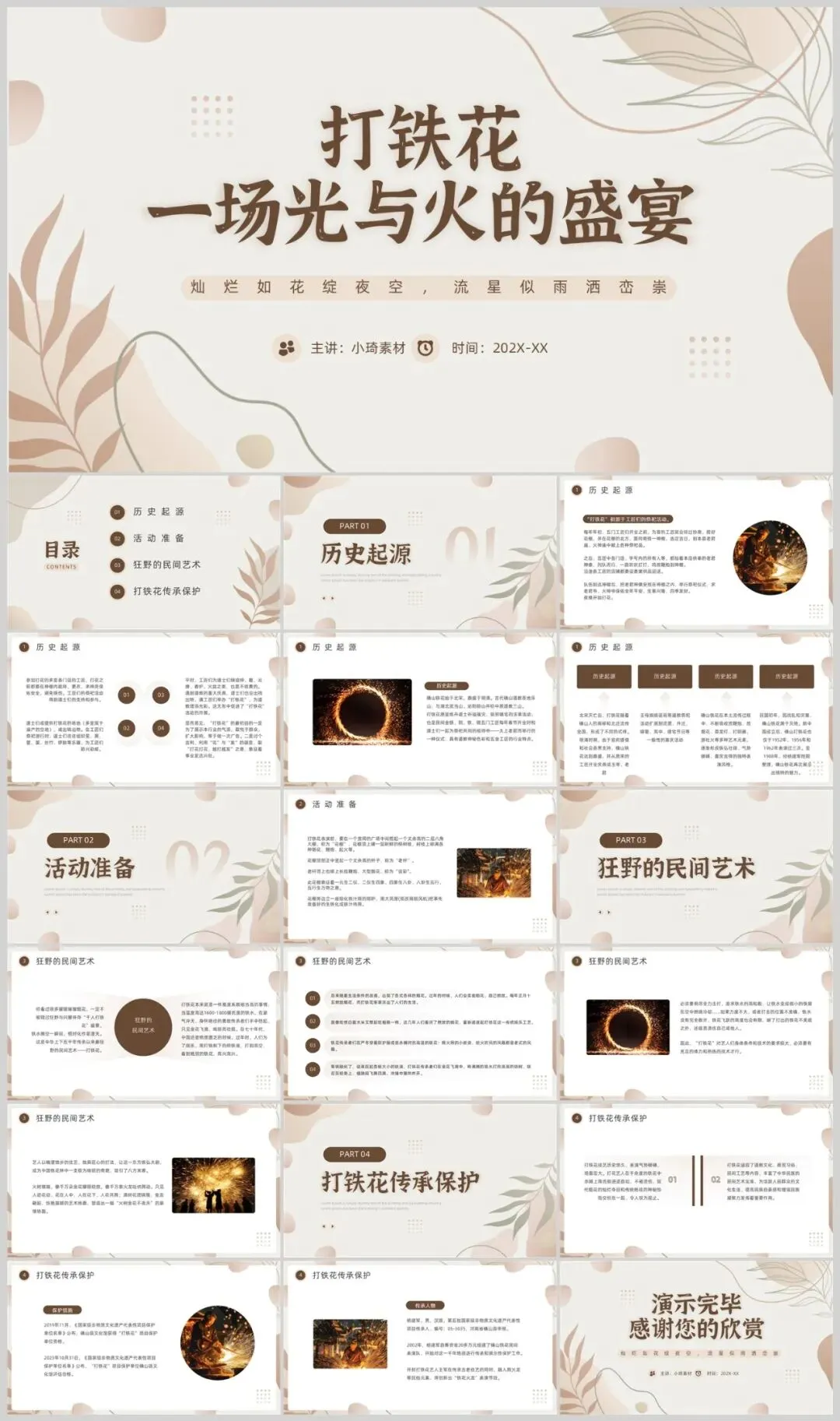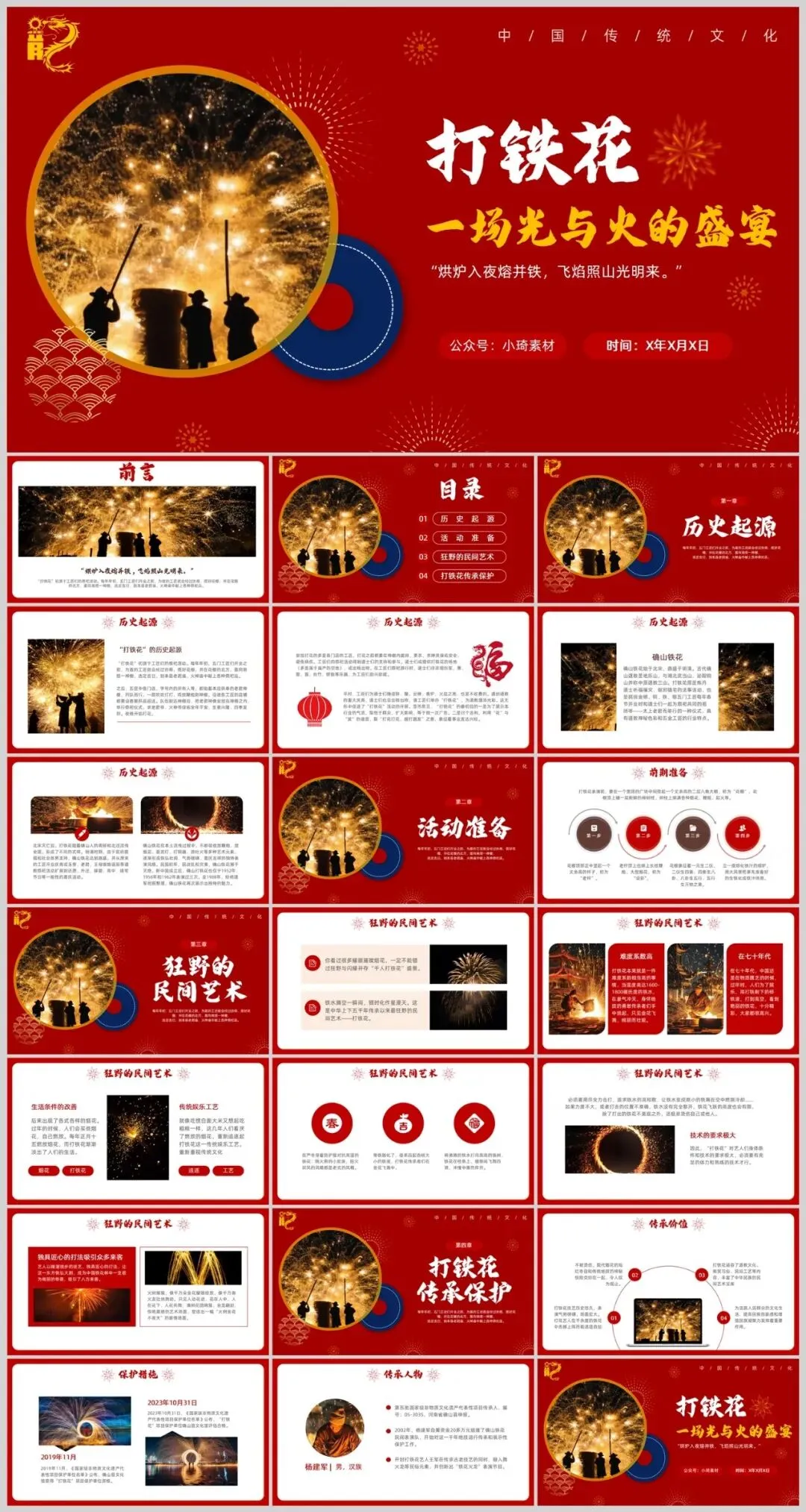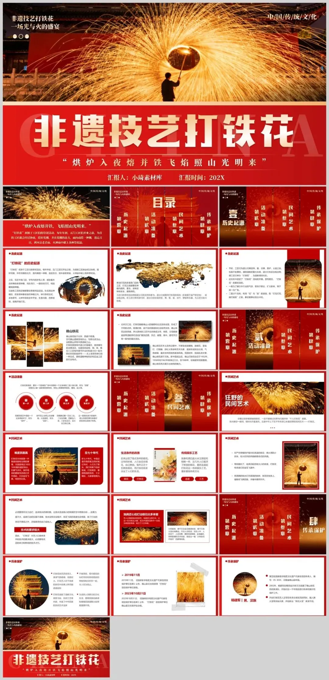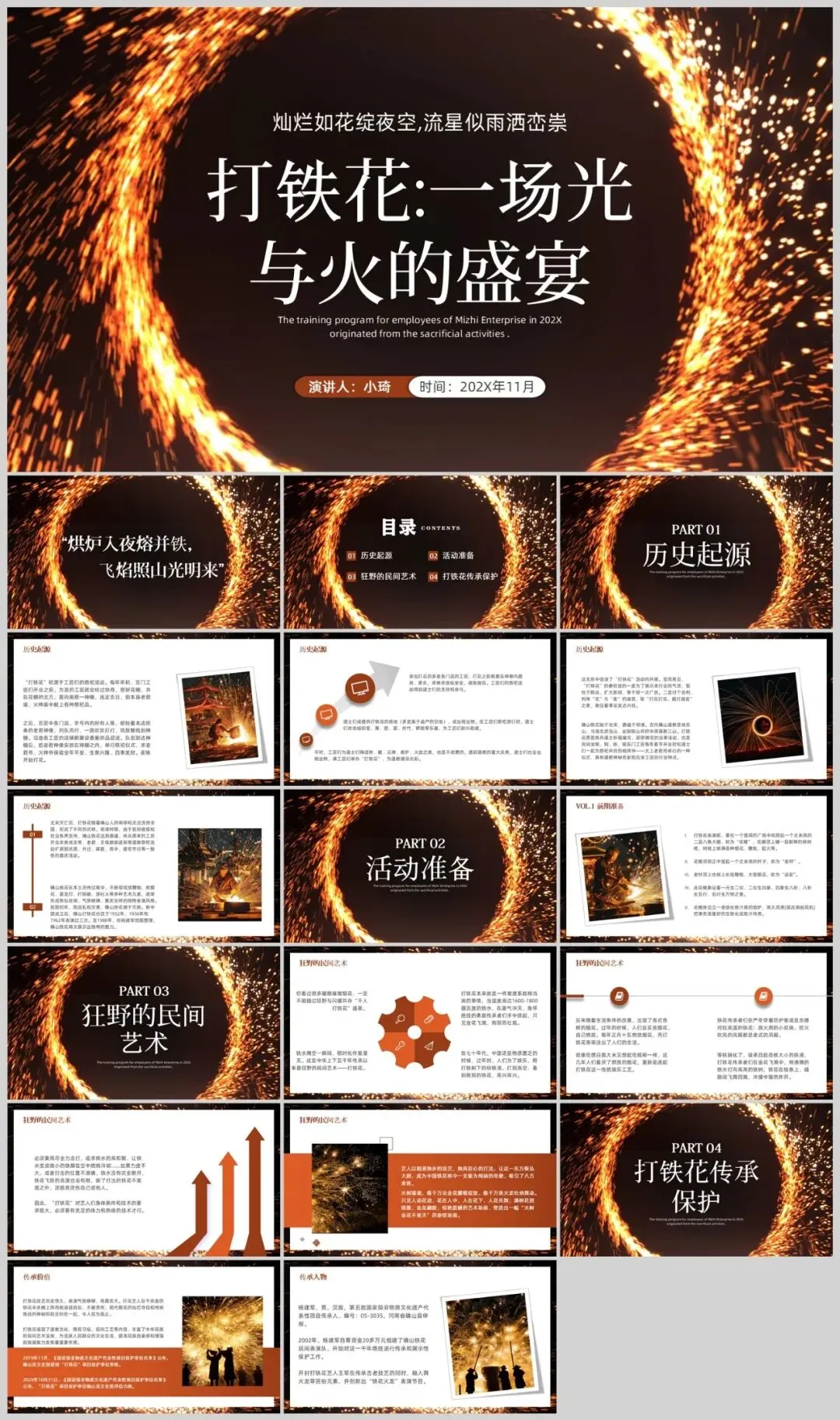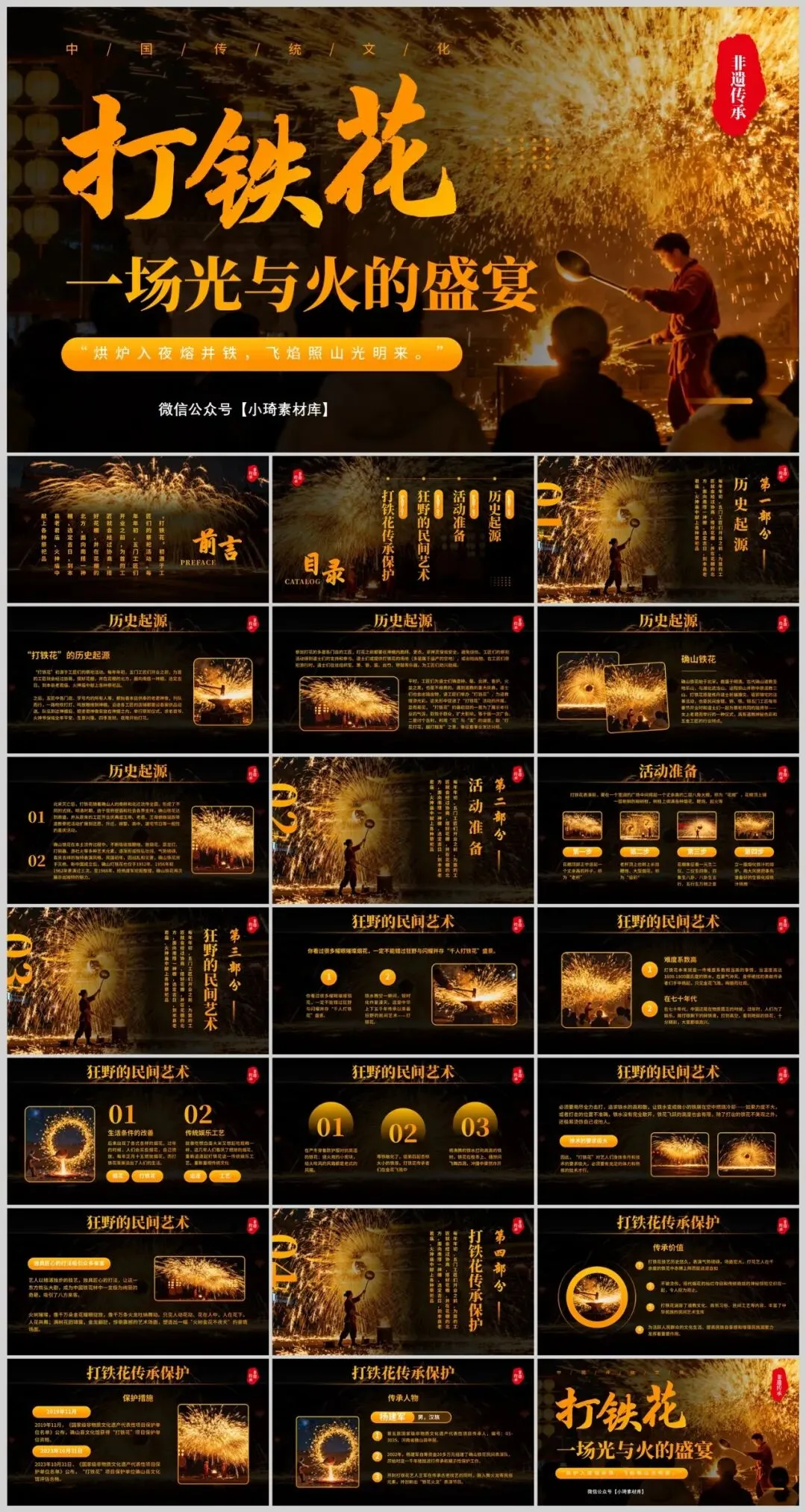 本期小琦要为各位宝宝们分享的是6套打铁花介绍PPT课件, 全部都包含内容,可直接用!也可以编辑修改!