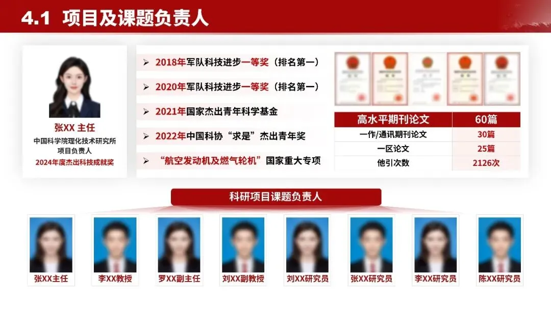 - 顶尖团队支撑项目负责人是国家杰出青年科学基金获得者,团队拥有 2 项军队科技进步一等奖等多项荣誉,发表高水平论文 60 篇,其中一区论文 25 篇,他引次数达 2126 次。