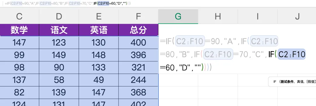 注意:务必保持降序排列,否则低分段可能被高分条件误判。