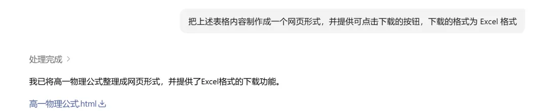 文字信息 → 结构化表格 → 可下载文件 → 可视化呈现