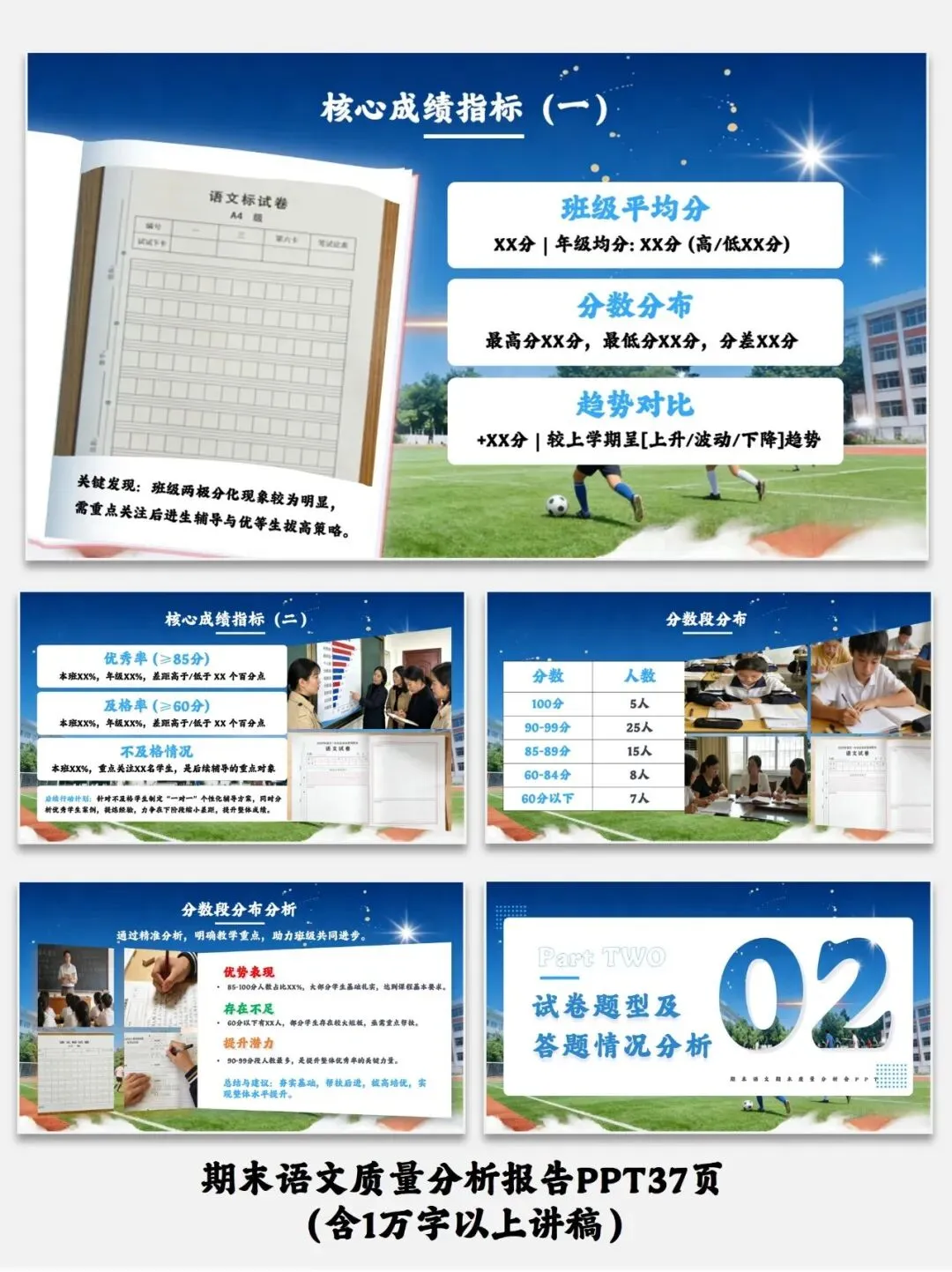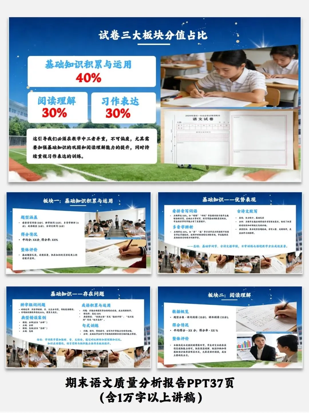 编号【215-5】期末语文质量分析报告PPT 37页(含1万字以上讲稿)