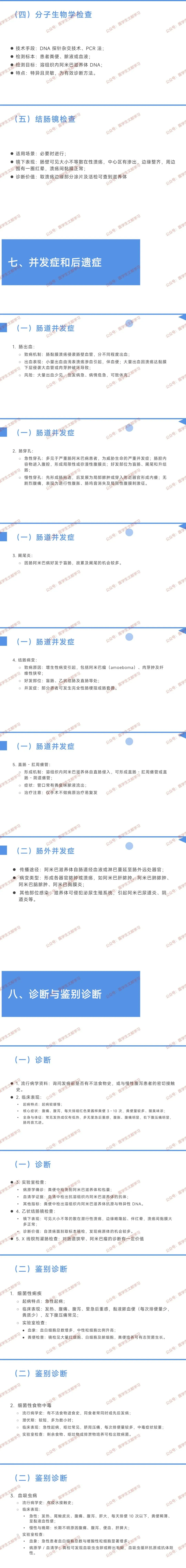 分类关联:属于阿米巴病的肠道类型,肠外阿米巴病(肝 / 肺 / 脑脓肿)为其继发表现。