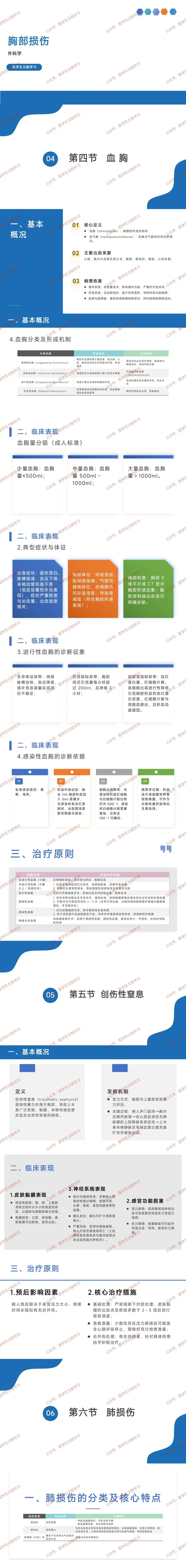 出血来源:主要包括心脏、胸内大血管及其分支、胸壁、肺组织、膈肌、心包血管。