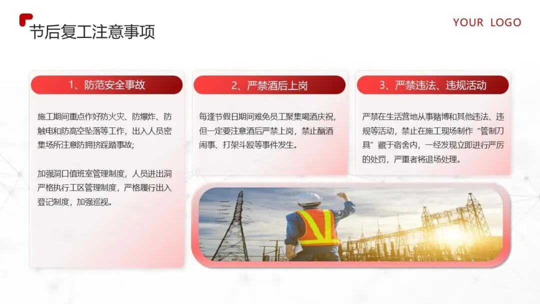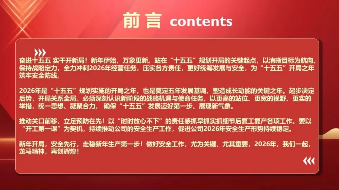 春节前,企业生产任务重、指标压力大,可能出现赶工期、抢进度的情况。生产人员和设备设施超负荷运转,可能造成生产(施工)现场组织混乱、人员超强度作业、正常工序时间(工期、工程养护期)被压缩,增加安全风险。