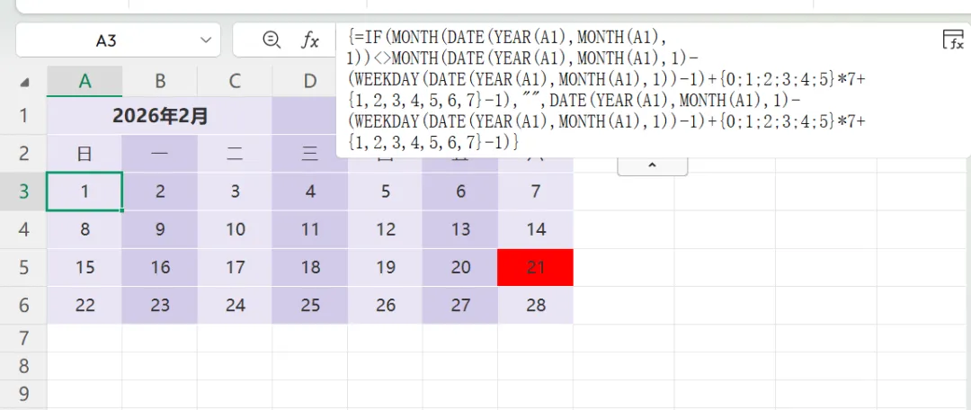 · 从左上角周一开始,生成 6×7的连续日期矩阵,也就是一个完整月历。当然也可以突出显示当天日期。