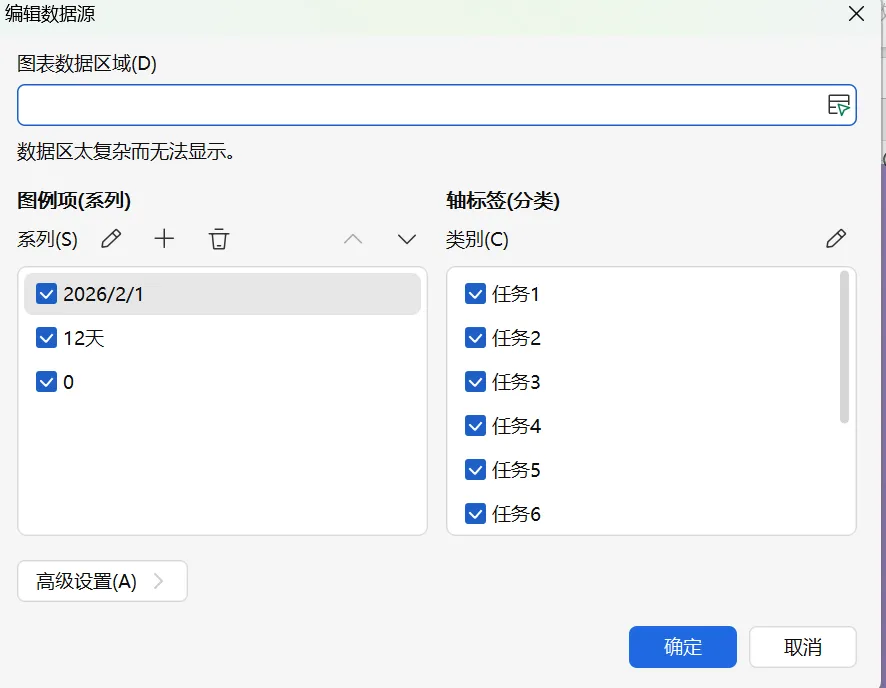 选择进度表中数据为图例项,按任务分类,新建堆叠条形图。