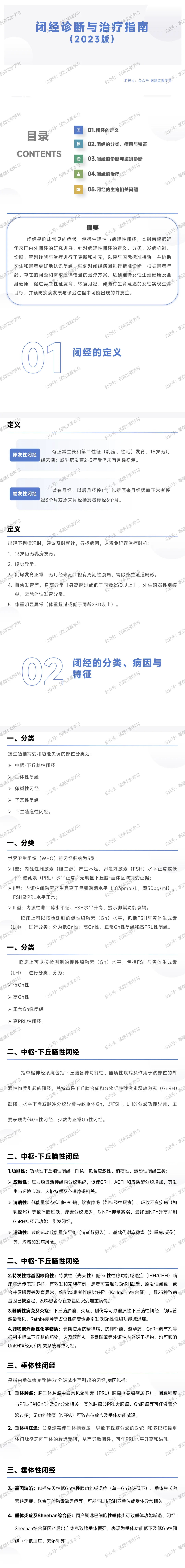 中华医学会妇产科学分会妇科内分泌学组. 闭经诊断与治疗指南(2023版)[J]. 中华妇产科杂志, 2024, 59(1): 5-13. DOI: 10.3760/cma.j.cn112141-20231018-00158.