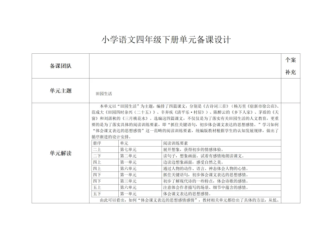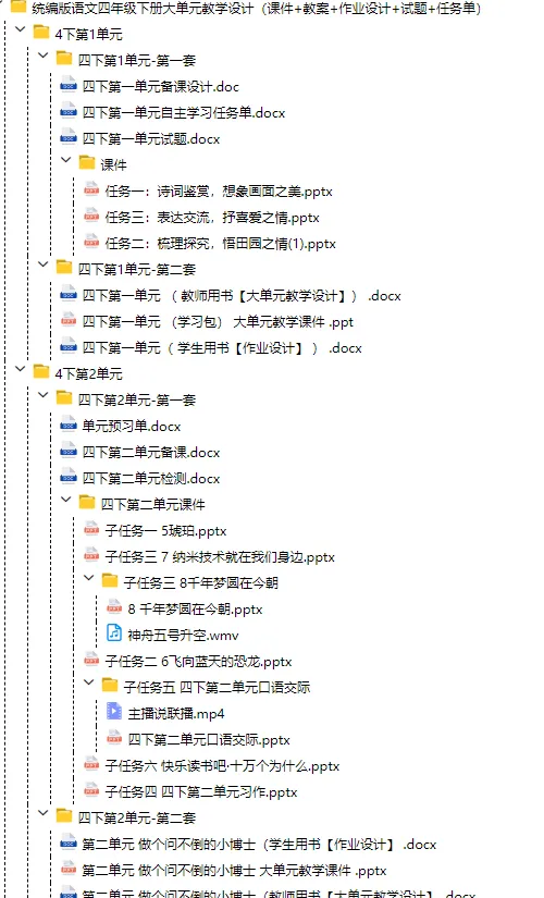 小学语文四年级下册 单元教学设计+课件PPT+试题+任务单(统编版),可下载打印!