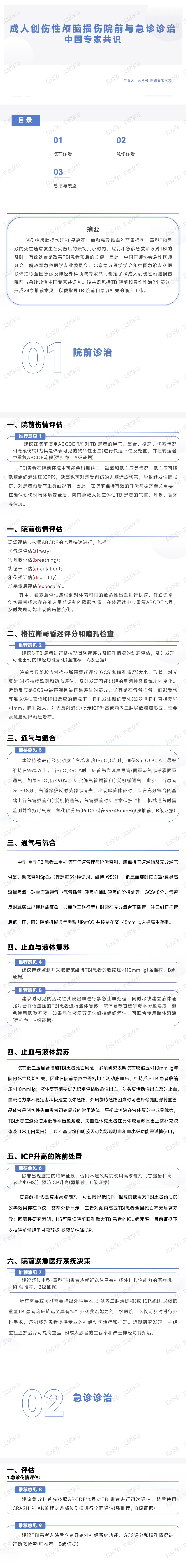 [共识·PPT]成人创伤性颅脑损伤院前与急诊诊治中国专家共识