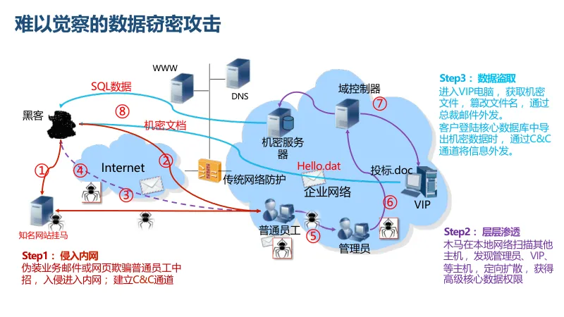 2.关键技术部署:应用大数据防火墙、APT防御、漏洞/入侵检测,依托数据溯源与水印追踪流向,实现全流程安全防护。