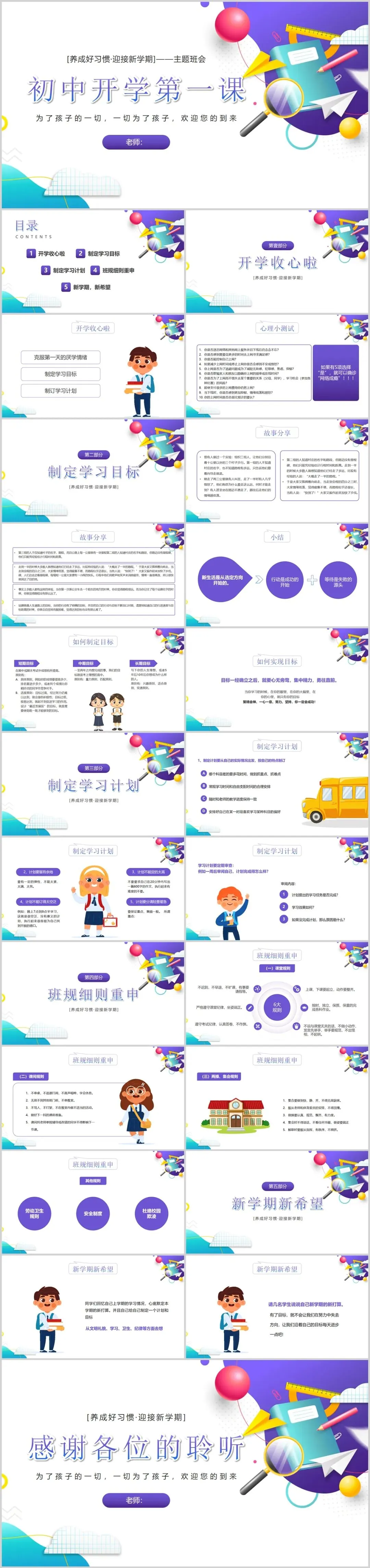 🌟 初中生开学“收心法宝”!这份《养好习惯,迎接新学期》班会PPT,结构清晰又好用!
