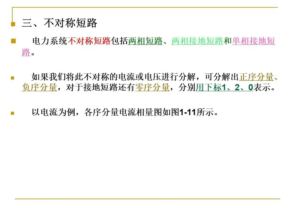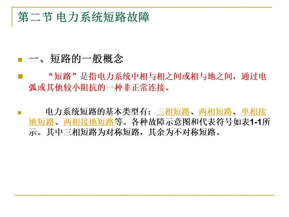 ②按保护功能分类,有短路故障保护和异常运行保护。前者又可分为主保护、后备保护和辅助保护;后者又可分为过负荷保护、失磁保护、失步保护、低频保护、非全相运行保护等。